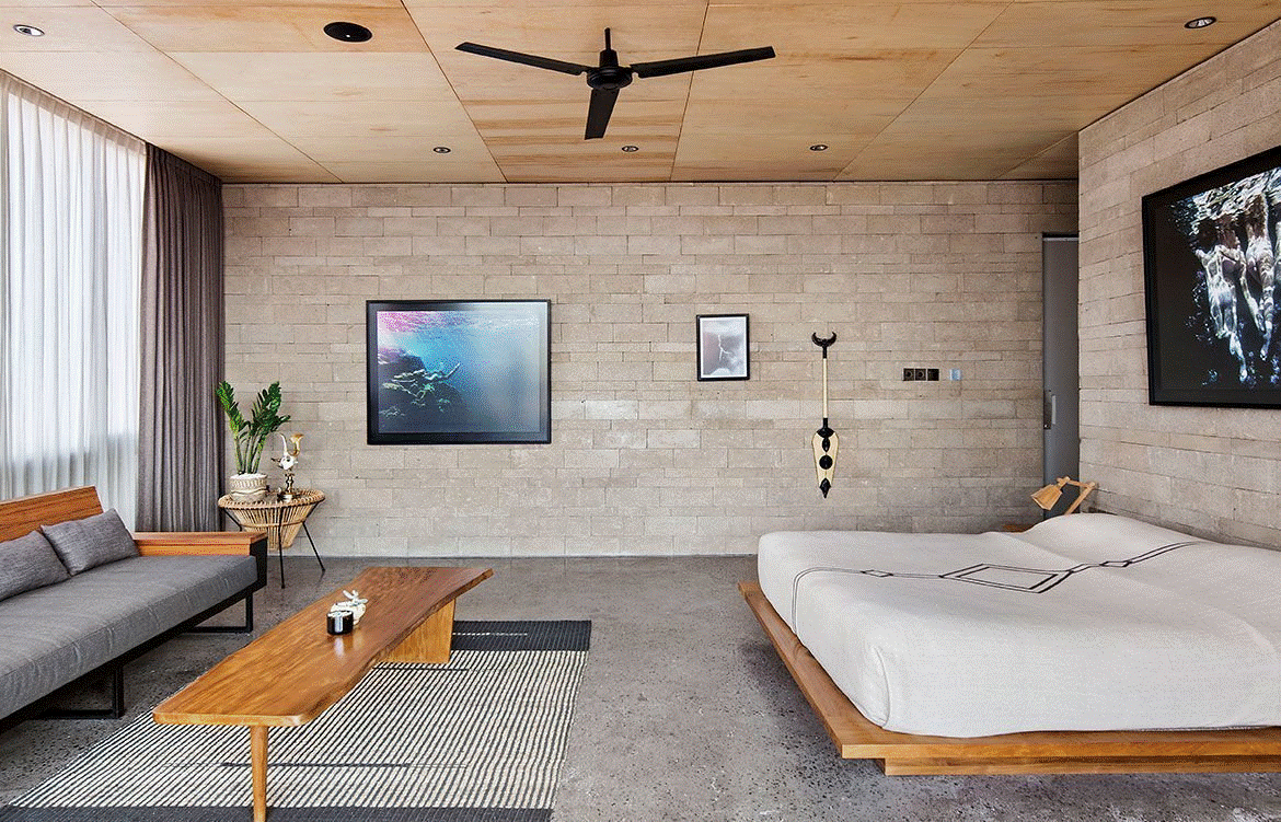 Không gian phòng ngủ phong cách Brutalism theo phong cách tối giảnKhông gian phòng ngủ phong cách Brutalism sẽ được đơn giản hóa nhất có thể bởi những món đồ nội thất theo phong cách tối giản. Chính vì vậy bạn nên lựa chọn những món nội thất có thiết kế tự nhiên, mang nhiều công năng để tối ưu diện tích sử dụng. Ngoài ra ánh sáng trong phòng ngủ cũng cần được thiết kế và bố trí hợp lý để chủ nhân có được không gian tận hưởng thoải mái nhất có thể. Cùng với đó là một bức tường sơn màu nâu giản dị kết hợp cùng với những đồ dùng nội thất bằng gỗ và trang trí thêm bằng những họa tiết đơn giản là một combo hoàn hảo cho không gian phòng ngủ thiết kế theo phong cách thô mộc.