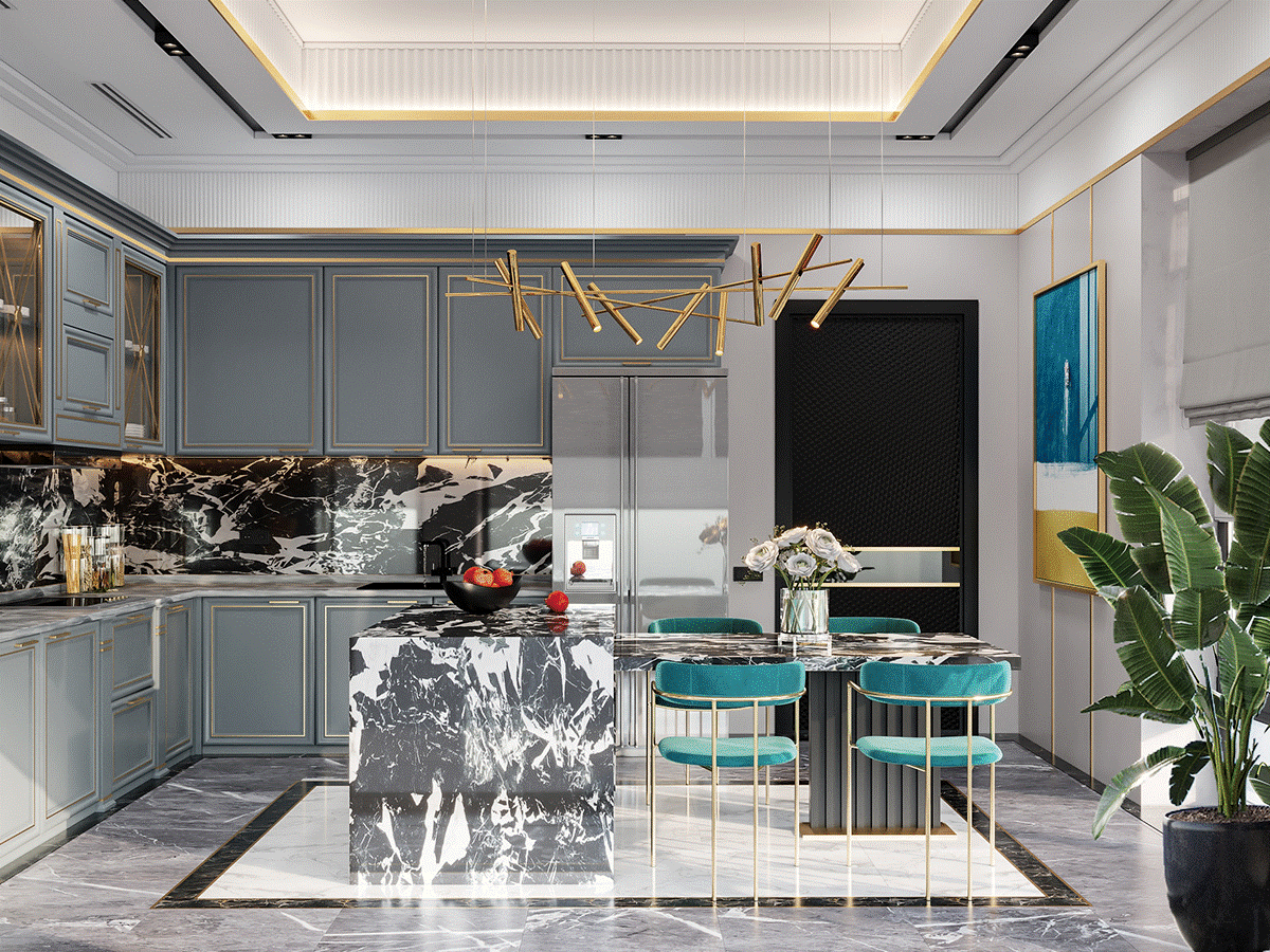 Phòng bếp thường được bố trí tỉ mỉ mang đến sự cách tân nghệ thuậtTrong không gian phòng bếp thường được bố trí mang đến sự cách tân nghệ thuật với thiết kế chú trọng vào sự bất cân đối với những đường uốn lượn thanh thoát. Đặc biệt là các phụ kiện đồ trang trí tại đây thường ưa chuộng các mẫu gạch ốp tường hoặc tranh ghép mô tả thực vật ấn tượng.