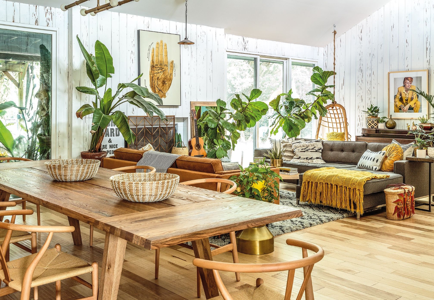 Phong cách nội thất Bohemian không thể thiếu cây xanhĐây là yếu tố được yêu thích hàng đầu trong phong cách nội thất Bohemian. Nếu như ở rất nhiều những phong cách khác như hiện đại, tối giản, tân cổ điển… thường sử dụng các chậu cây cảnh, chậu hoa nhỏ nhắn thì đối với phong cách Bohemian những loài cây hoang dã, được lấy từ núi cao hay trên đồi, thường được đưa vào không gian, giúp căn phòng đẹp tự nhiên và gần nhất với thiên nhiên. Các loại cây thường có kích thước nhỏ, có sức sống mãnh liệt, trông rất khỏe khoắn, vững chãi như cây xương rồng, sen đá…Đều trở những thành người bạn giúp kết nối không gian với thiên nhiên một cách gần gũi nhất.