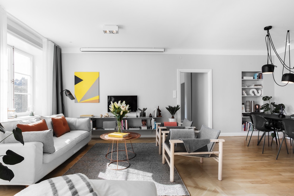 Mang đến vẻ đẹp hút mắt bởi phong cách Bắc Âu hiện đạiPhong cách Bắc Âu, hay còn gọi là phong cách Scandinavian với đặc trưng sử dụng màu sắc trung tính mang đến vẻ đẹp thanh lịch, tươi sáng tự nhiên. Đối với những người có độ thẩm mỹ cao, yêu thích phong cách mới lạ thì kiểu bố trí nội thất căn hộ 90m2 theo phong cách Bắc Âu này là một lời khuyên “hợp tình hợp lý”. Với lối thiết kế đơn giản, tinh tế, chi phí hợp lý và độ bền cao mang đến cho bạn một cảm giác nhẹ nhàng, thư thái và bình yên. Xung quanh căn hộ nên được bố trí thêm những chậu cây nhỏ tạo cảm giác tự nhiên hơn.
