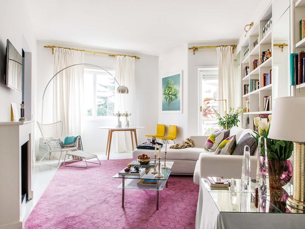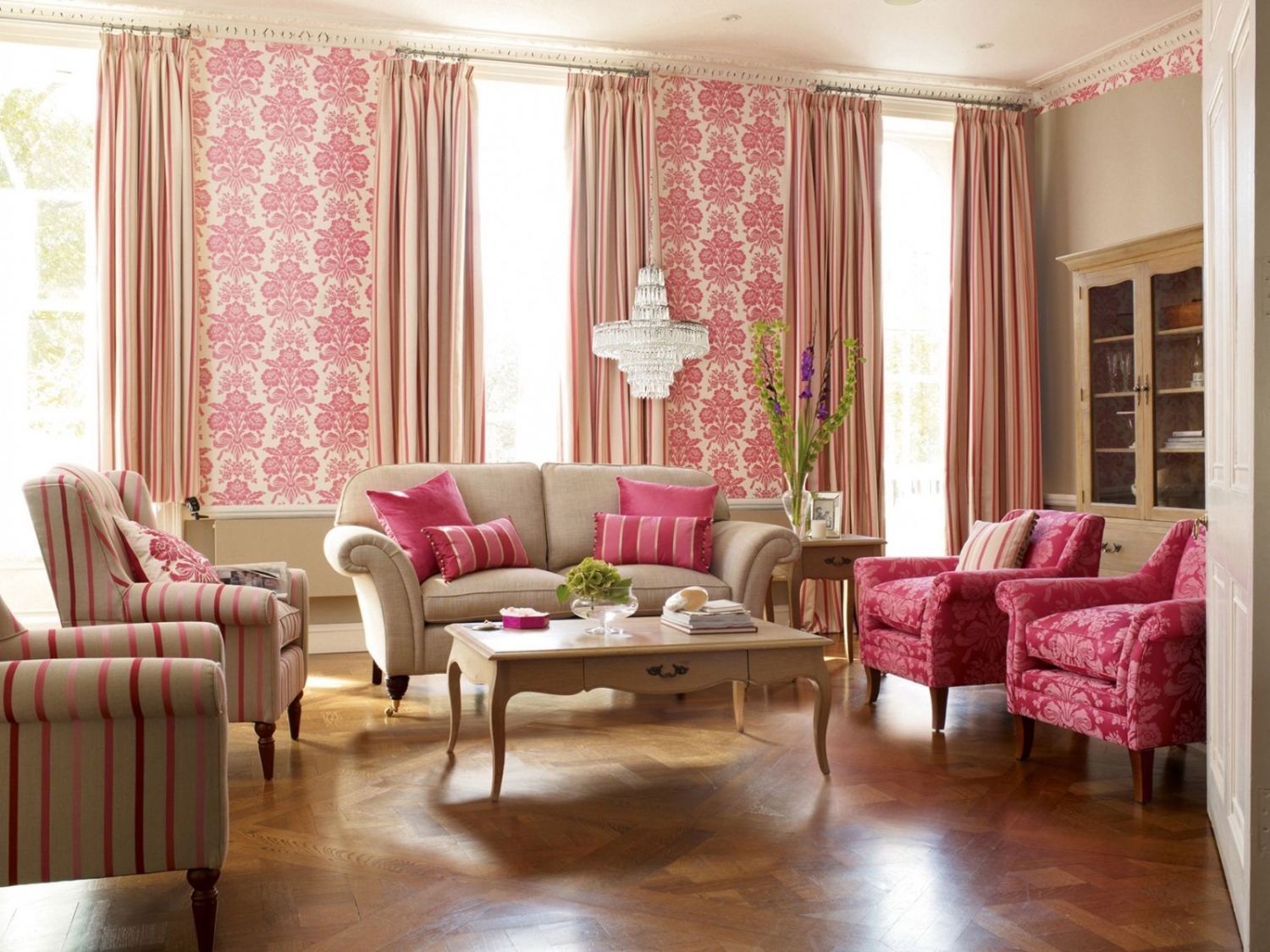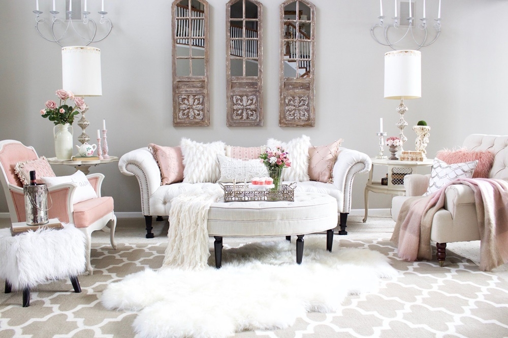 Phòng khách với sự kết hợp nhiều màu sắc với nhau để tạo nên một không gian hoàn mỹKhông gian phòng khách được thiết kế với gam màu sắc chủ đạo như : trắng, kem, hồng giúp không gian nhẹ nhàng, nữ tính và vô cùng ấm áp. Những món đồ nội thất như ghế ngồi, sofa… cũng có kiểu dáng hết sức ấn tượng với những đường cong mềm mại, uyển chuyển và gợi cảm tạo cho người nhìn sự thư giãn và bay bổng trong không gian. Ngoài ra các đường nét và họa tiết trong không gian nội thất theo phong cách romanticism cũng rất thanh mảnh, lịch thiệp tạo cho người nhìn sự sang trọng, quý phái