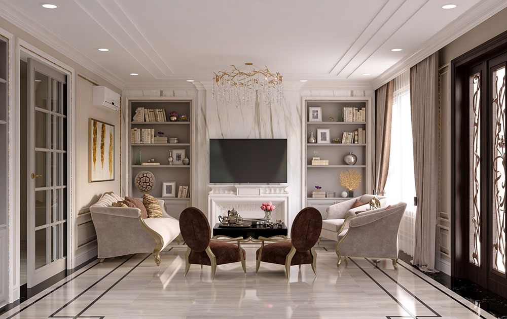 Không gian phòng khách tinh tế với thiết kế nội thất theo phong cách LuxuryKhông gian phòng khách được biết đến như trái tim của căn nhà khi mà mọi hoạt động của gia đình đều chủ yếu tập trung ở không gian này từ sinh hoạt cho đến đón tiếp những vị khách quý đến thăm nhà. Vì vậy khi thiết kế phòng khách phong cách Luxury thường có những đường nét gọn gàng, thanh mảnh nhưng không kém phần sang trọng tinh tế trong từng đường nét xử lý của kiến trúc sư. Do đó khi thiết kế phòng khách các KTS cần phải bộc tả được hết vẻ đẹp của phong cách mà tổng thể đang hướng đến nhưng vẫn phải giữ được sự thông thoáng cùng tính tiện nghi cao để cho người dùng có thể thoải mái hoạt động. Ngoài ra việc sử dụng cây xanh cũng như tranh treo tường giúp hoàn thiện vẻ đẹp cho căn phòng này.