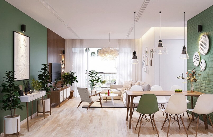 Nguyên lý hài hòa nhất quán cho mọi phong cáchSự cân bằng đối xứng của nguyên lý thiết kế nội thất này nằm ở các yếu tố sắp xếp trong một bố cục. Đó là sự cân bằng, đối xứng của những yếu tố cấu tạo nên nội thất từ chiều cao, chiều rộng không gian, các món đồ bài trí, cấu tạo. Nhìn chung, có thể nói nguyên lý về sự cân bằng trong thiết kế nội thất có nội dung cốt lõi là sự cân đối giữa các yếu tố sắp xếp trong tổng thể một không gian. Nguyên lý cân bằng áp dụng được với bất cứ nội thất nào được sử dụng trong không gian kể cả những vật trang trí như tranh ảnh khổ nhỏ. Không chỉ mang đến tính thẩm mỹ cao cho không gian mà khi áp dụng nguyên lý này thì căn phòng sẽ rất gọn gàng, hợp phong thủy và hợp khoa học. Trong đó sự cân bằng trong nội thất được chia thành hai mảng là cân bằng đối xứng cân đối và cân bằng bất đối xứng2. Nguyên Lý Nhịp Điệu