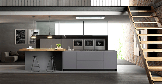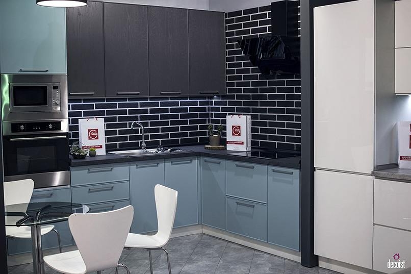 Phong cách phối màu đặc trưng cho không gian bếp Thiết kế tủ bếp này có bề ngoài phù hợp với phong cách hiện đại, độc đáo. Mang đến sự thuận tiện và hiện đại cho bất cứ thành viên nào khi sử dụng. Một căn bếp màu xám xanh dẫn đầu với những màu xám nhạt khác theo sát phía sau. Khi chọn xám làm chủ đạo trong căn bếp hiện đại, tốt nhất bạn nên chọn màu mát hơn và nhẹ hơn vì nó mang lại cho không gian một cảm giác vui vẻ, tràn ngập ánh sáng và lạc quan. Thêm vào mặt bàn bếp màu trắng, ghế đẩu quầy bar, backsplash hoặc các tính năng khác để tạo ra sự tương phản và quan tâm trực quan.2. Pha Trộn Màu Sắc