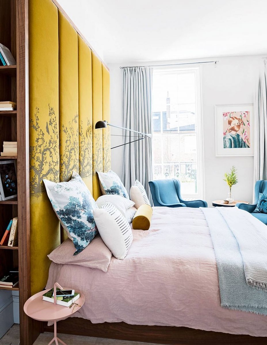 Điểm một chút thôi cũng tạo nên không gian mê hoặcMàu vàng phối vơi màu xanh Pastel sẽ mang đến một ấn tượng thị giác vô cùng thú vị, chúng khiến bất cứ ai nhìn vào cũng cảm thấy khoan khoái và nhẹ nhàng. Tông xanh Pastel lạnh làm chủ đạo và điểm xuyết thêm một chút sắc vàng đậm làm căn phòng trở nên ấm áp rực rỡ hơn rất nhiều.G. Màu Vàng Và Hồng
