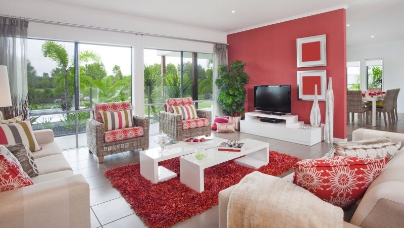 Phòng khách là không gian quan trọng nhất của một ngôi nhà, đó không chỉ là nơi dùng để tiếp khách mà còn là không gian chung, không gian nghỉ ngơi và giải trí của tất cả mọi thành viên trong gia đình. Theo thời gian phong cách decor trang trí được dùng trong thiết kế nội thất phòng khách ngày càng đa dạng. Cùng với đó là sự phát triển của đồ nội thất phòng khách được tạo ra nhằm đem đến sự mới lạ và độc đáo cho không gian. Vậy nên phòng khách thường được chú trọng trang trí tập trung vào những món đồ nội thất có giá trị và sang trọng. Những ý tưởng thiết kế phòng khách với gam màu đỏ hiện đại là một xu thế khá táo bạo khi sử dụng gam màu “nóng” cho phòng khách. Khi nói đến tâm lý học về màu sắc, đỏ được coi là màu của sự hung hãn, của đam mê cháy bỏng dù ở bất kỳ một sắc độ nào dù là đỏ thẫm, màu hồng ngọc, màu anh đào hay đỏ táo. Trên thực tế, đây là màu sắc mà nhiều người e ngại khi trang trí nhà bởi nó quá rực rỡ và táo bạo, dễ gây ảnh hưởng đến tâm lý của bạn. Nhưng không thể phủ nhận được năng lượng tích cực mà gam màu đỏ mang lại. Màu đỏ tượng trưng cho sự trẻ trung, lãng mạn, lòng trung thành và trái tim dũng cảm. Người thích gam màu đỏ thường là người có tính cách mạnh mẽ và có trái tim nhiệt thành. Nếu màu đỏ là màu yêu thích của bạn và bạn muốn mang nó vào phòng khách của mình, thì bạn cũng đừng ngần ngại đưa màu này vào chỉ cần bạn khéo léo sắp xếp kết hợp nội thất phù hợp không gian sẽ không chỉ đẹp mắt mà còn là sự mới mẻ sinh động, đem lại cảm giác hứng khởi đầy tinh thần sảng khoái. Mixfurnitures.com giới thiệu đến bạn ý tưởng trang trí nội thất phòng khách với tông màu đỏ sẽ giúp bạn tháo gỡ được những nhược điểm ở trên.